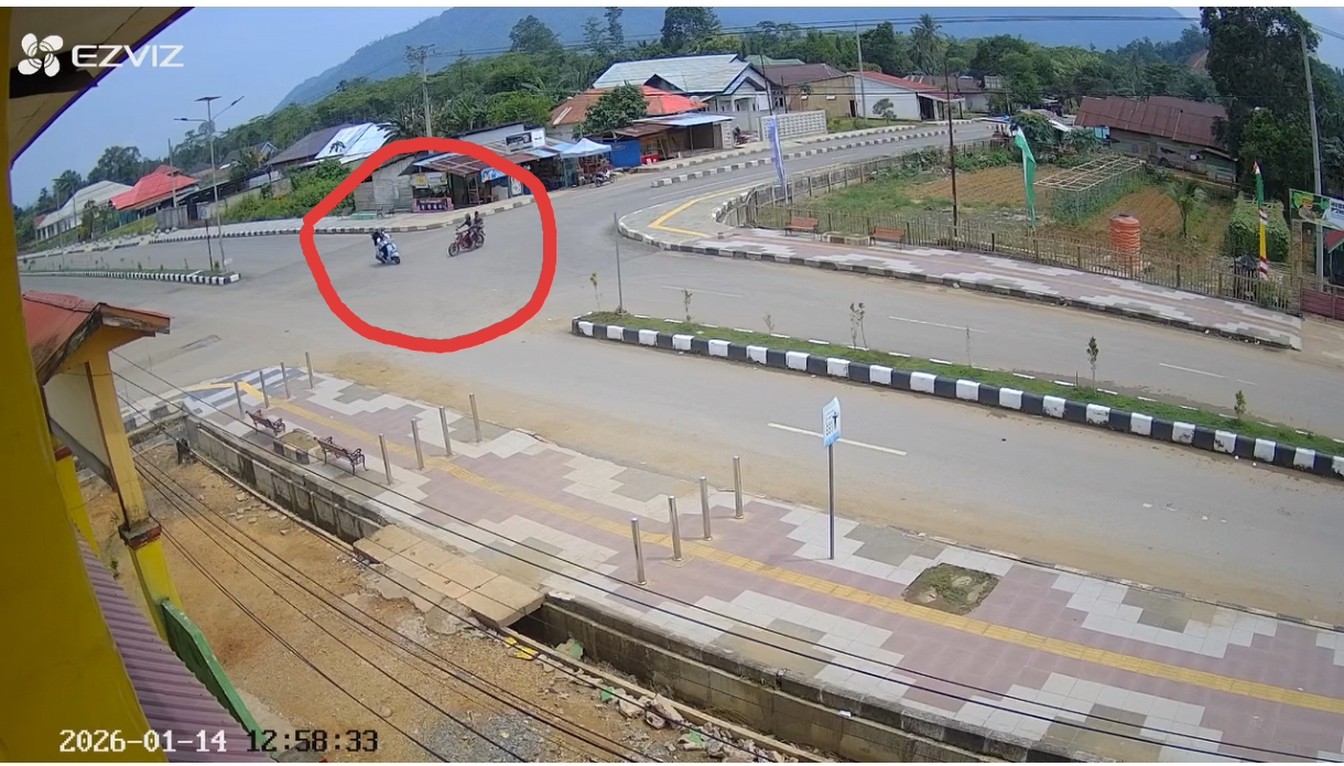 Dari rekaman CCTV yang beredar di Media Sosial (Medsos) memperlihatkan kedua sepeda motor yang melaju dari arah yang berbeda bertabrakan di persimpangan jalan.