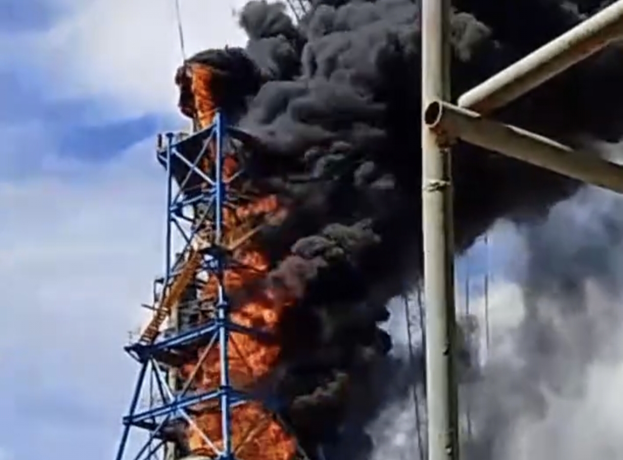 Dari video yang beredar terlihat api membesar membumbung tingga membakar menara scrubber tempat para pegawai bekerja. Terlihat beberapa pekerja berusaha mencari jalan untuk menghindar dari kobaran api.