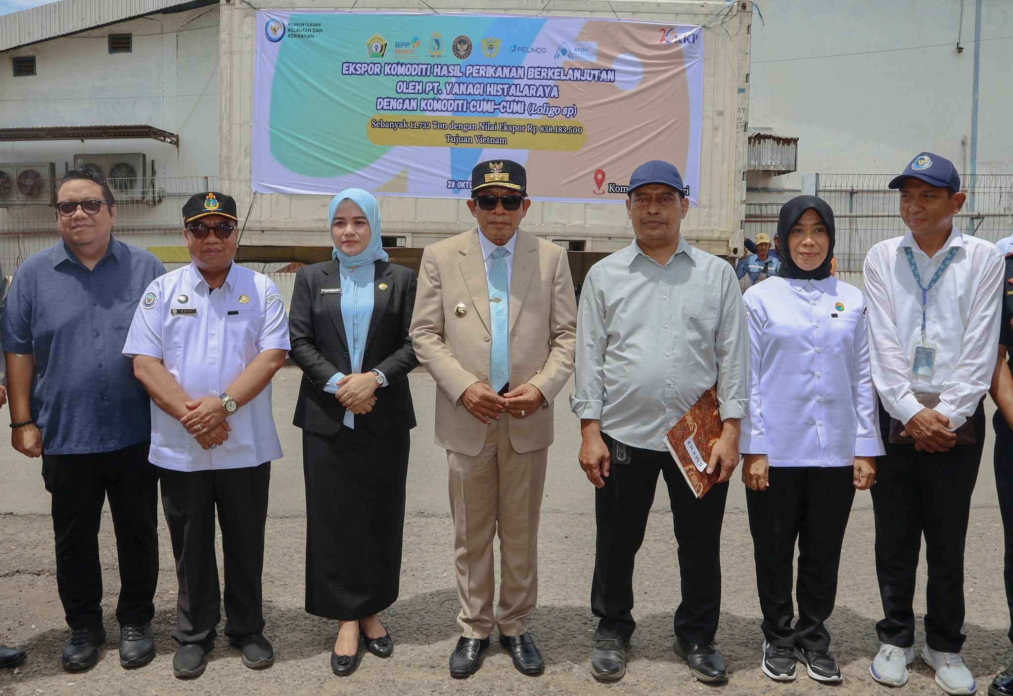 Radarsulawesi.com, Kendari – Wakil Gubernur Sulawesi Tenggara, Ir. Hugua, M.Ling, secara resmi melepas ekspor komoditi hasil perikanan berkelanjutan oleh PT Yanagi Histalaraya berupa cumi-cumi (Loligo sp) sebanyak 11.732 ton dengan nilai ekspor mencapai Rp 838.183.500. Pengiriman ekspor ini ditujukan ke Vietnam dan dilaksanakan di Pelabuhan Perikanan Samudera (PPS) Kendari, Selasa (28/10/2025).